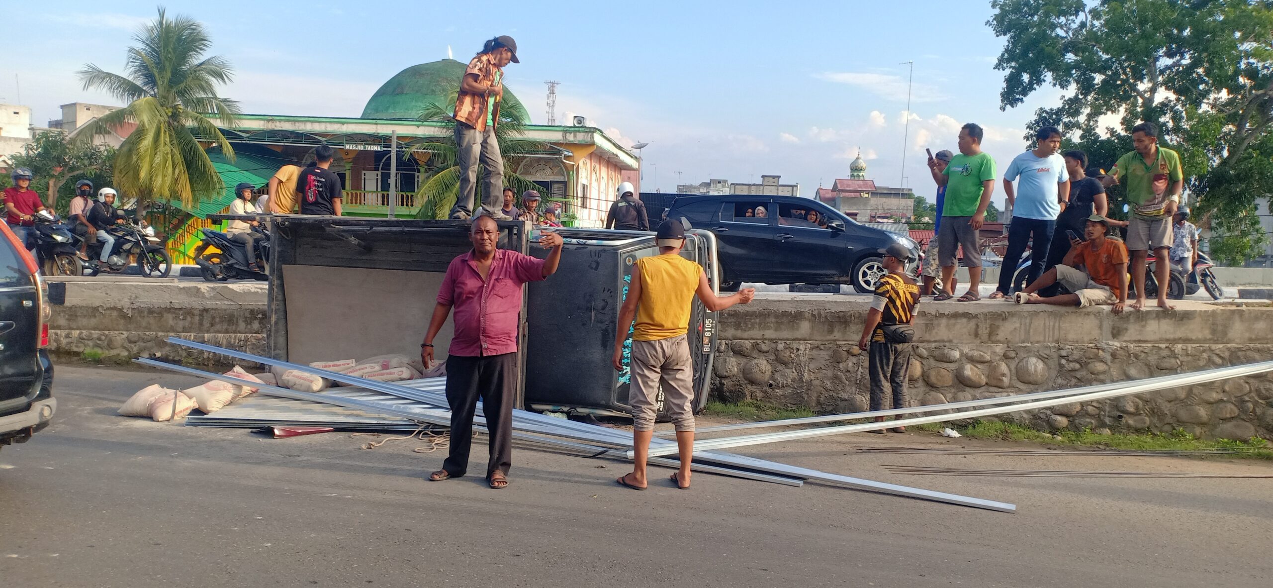 “Saya baru ambil barang, dan barang ini mau saya antar ke lokasi pekerjaan, di Karang Baru. Tiba -tiba ada pengendara sepeda motor menyalip disamping mobil saya, sehingga saya langsung mengelakkan pengendara sepeda motor tersebut, bang”, kata Riswan, supir mobil Pick Up yang mengaku sebagai warga Kota Langsa.