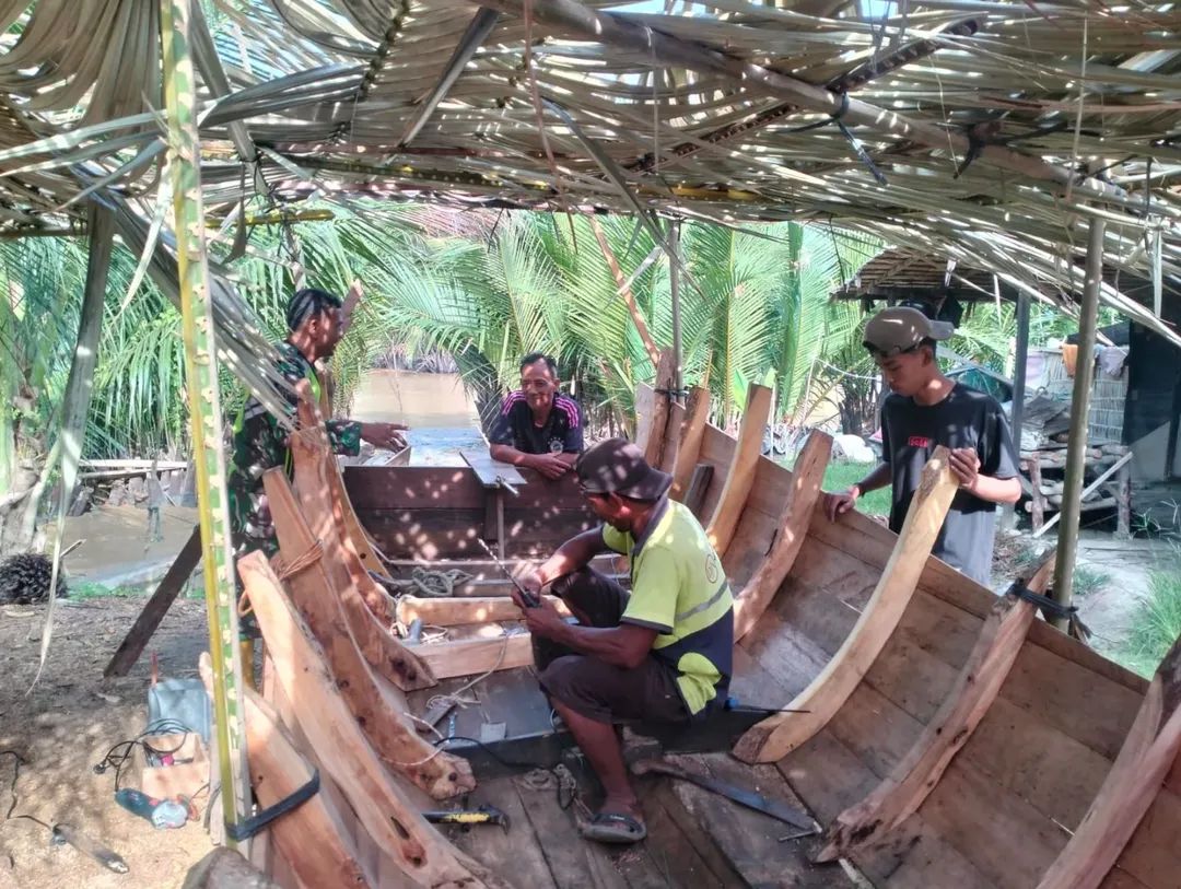 Suasana akrab terlihat jelas saat Babinsa berinteraksi bersama pengerajin perahu di desa binaannya, berbagi cerita dan canda tawa. Interaksi yang hangat ini menjadi bukti nyata kemanunggalan TNI dengan rakyat, di mana kehadiran Babinsa selalu disambut baik oleh masyarakat binaan.